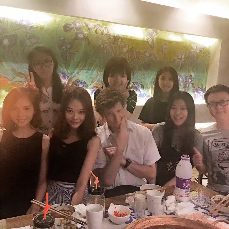 楊雅老師的出國(guó)班聚餐現(xiàn)場(chǎng),吃的火辣辣的火鍋呀,夏天就是要這么火辣!活捉一只賣萌的外教老師,咦,Davy老師是在賣萌嗎?還是偷偷吃了小米辣??!