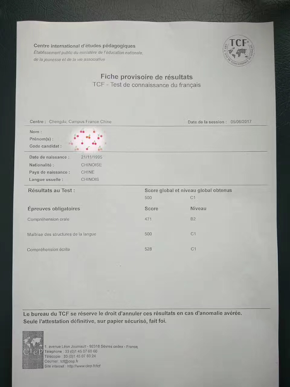 考試類型:TCF所報課程:法語出國班 沒有意外的話,據(jù)說馬上就要去格勒二大讀書啦,小亞代表法亞大家祝福你學(xué)業(yè)有成啦~