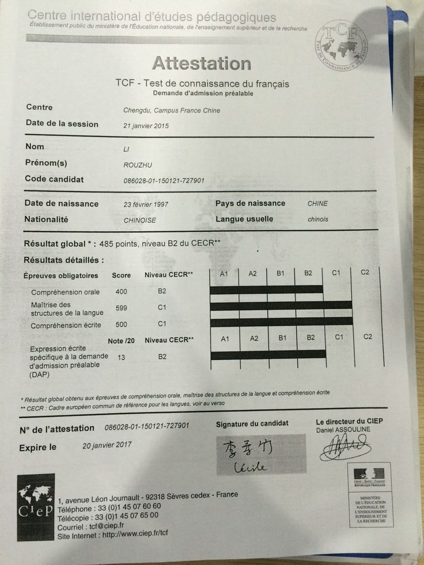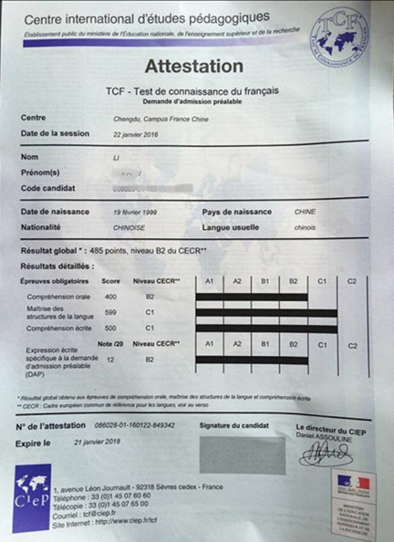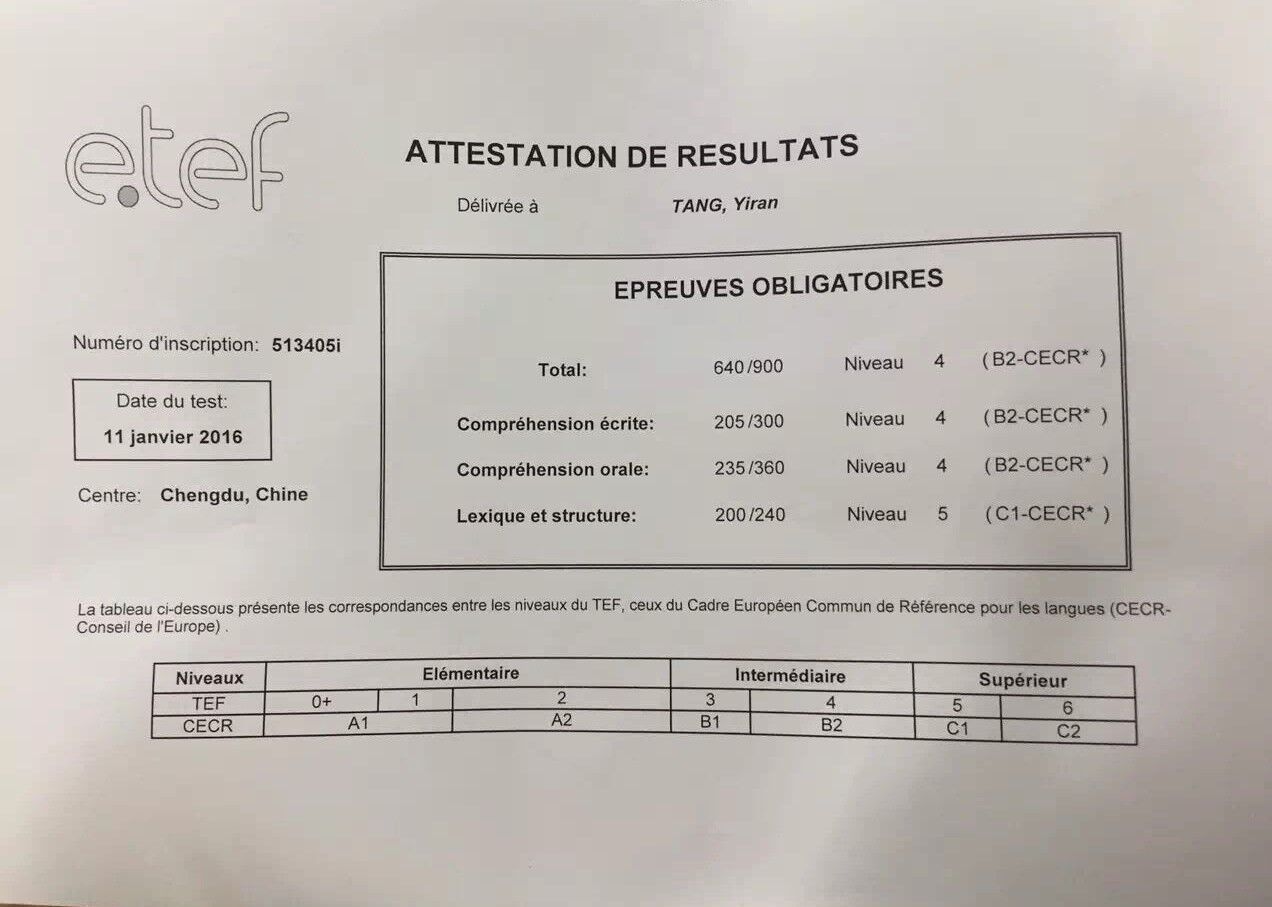 考試類型:TCF所報(bào)課程:出國班
