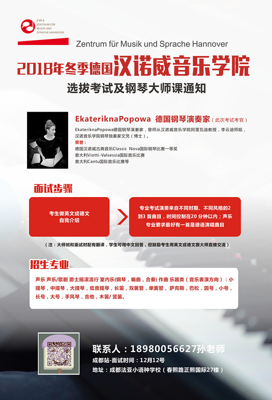 2018年冬季德國(guó)漢諾威音樂(lè)語(yǔ)言中心 選拔考試及鋼琴大師課通知