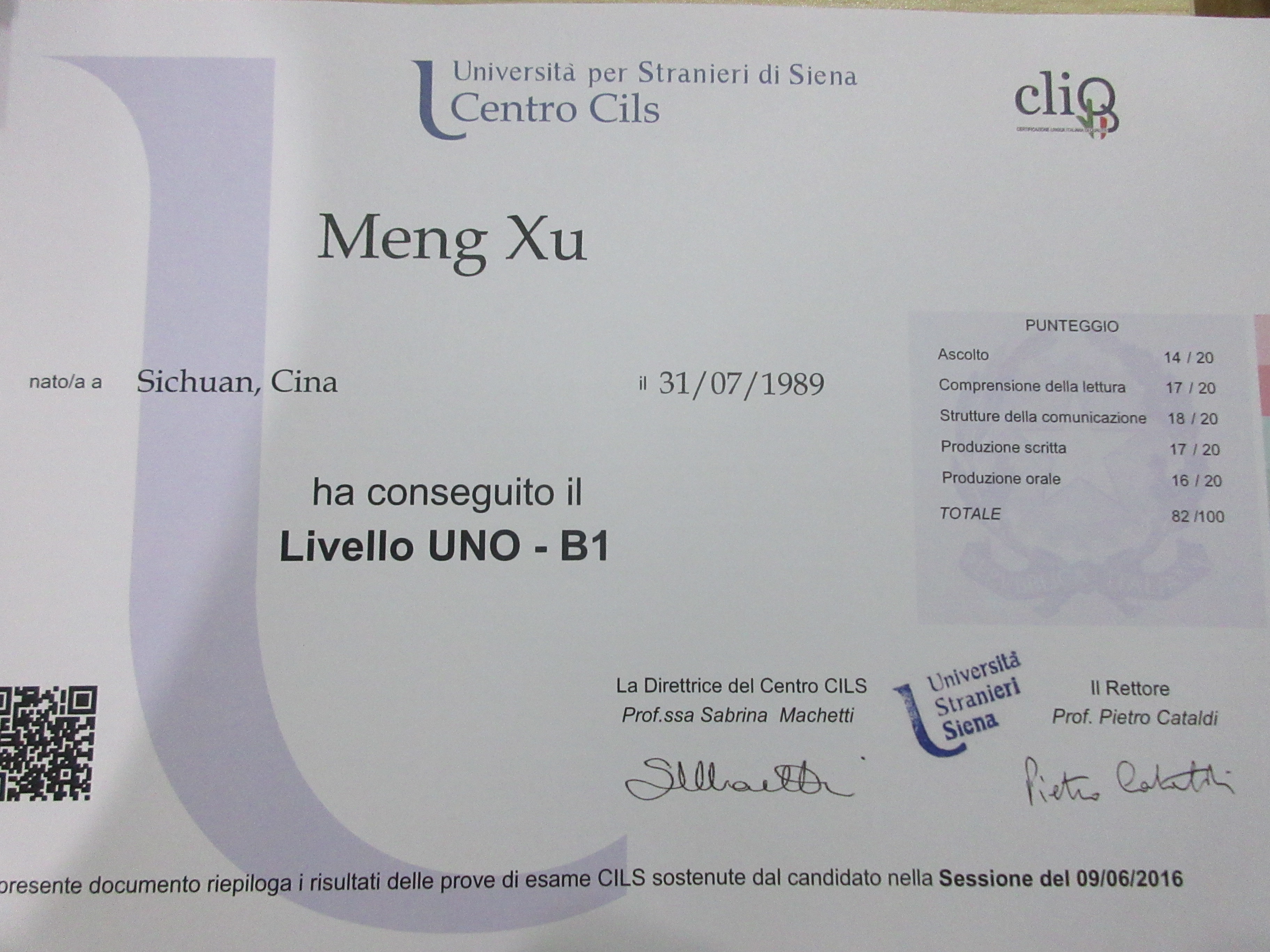 考試類型:CILS所報(bào)課程:初級(jí)班意大利語 CILS B1