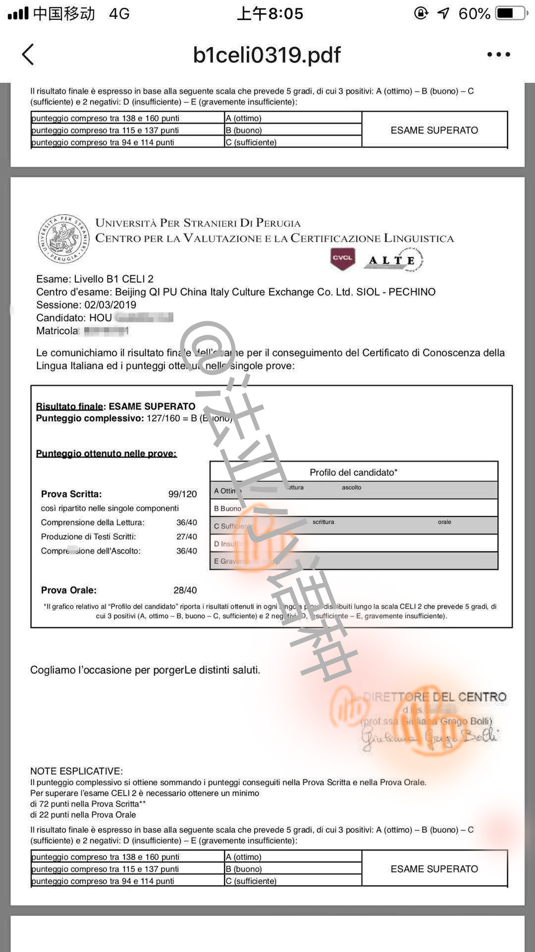 考試類型:CELI所報(bào)課程:意大利語(yǔ)出國(guó)班