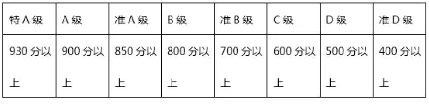 JTEST中高級別A-D級的滿分為1000分,其中閱讀500分,聽力500分。認(rèn)定基準(zhǔn)為二者合一的分?jǐn)?shù)定級別。