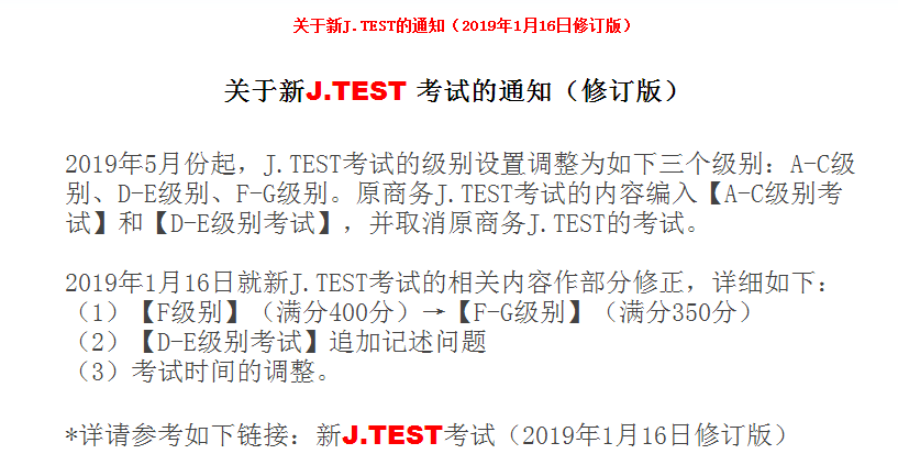關(guān)于新J.TEST的通知(2019年1月16日修訂版)