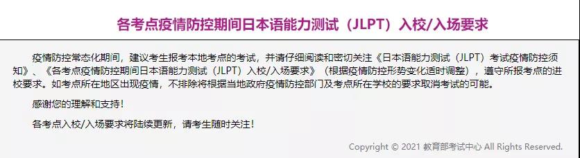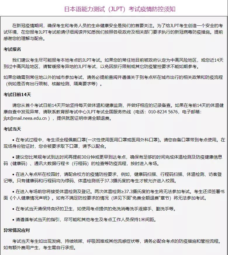特殊時期請務必詳細看一下日本語能力測試(JLPT)考試疫情防控須知: