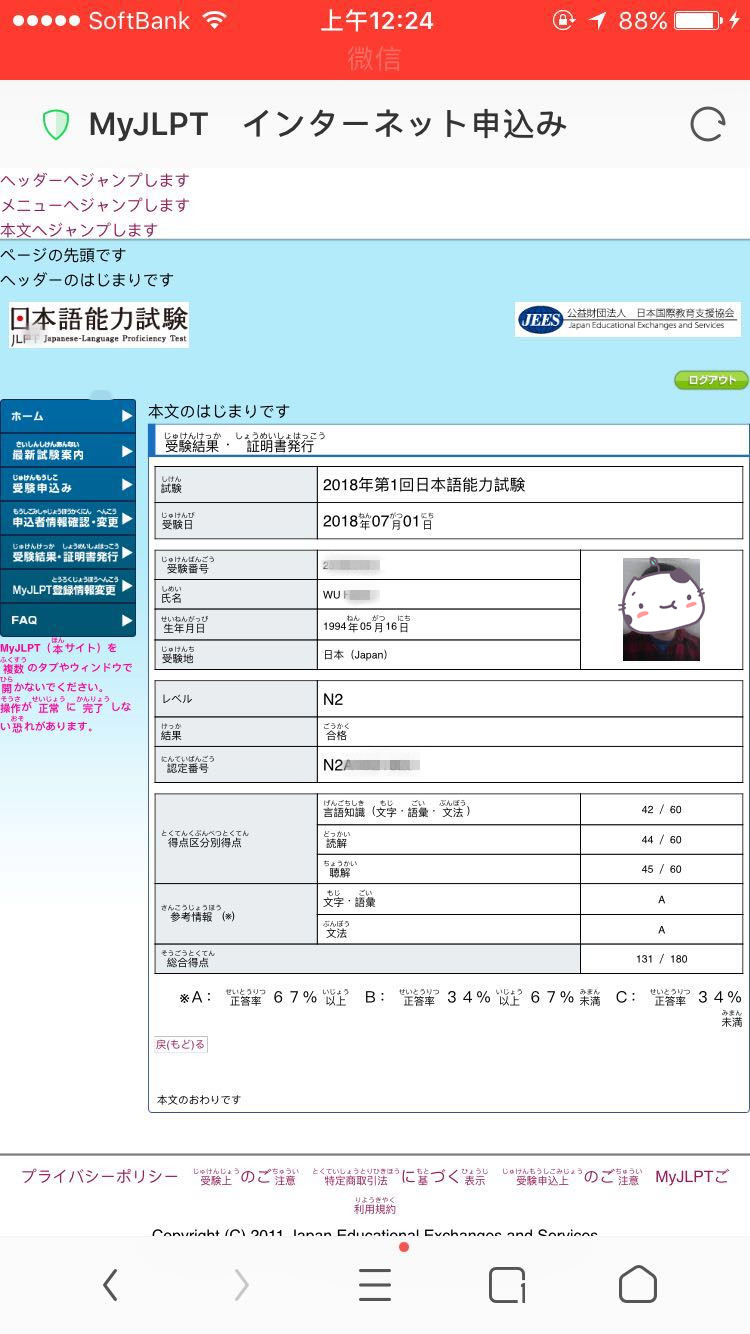 考試類型:JLPT-N2所報課程:白班