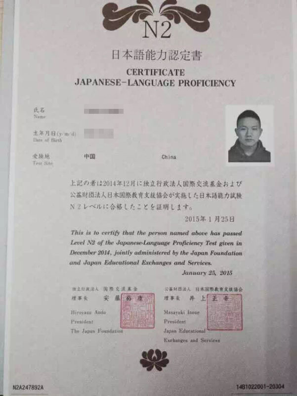 謝同學(xué)是我校日語(yǔ)出國(guó)班的優(yōu)秀學(xué)員,以高分通過(guò)日語(yǔ)N2考試