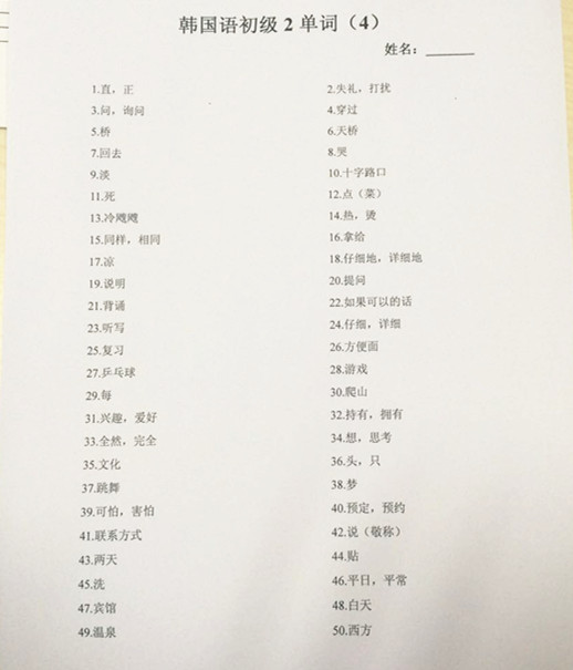 【韓語初級(jí)班】默寫單詞