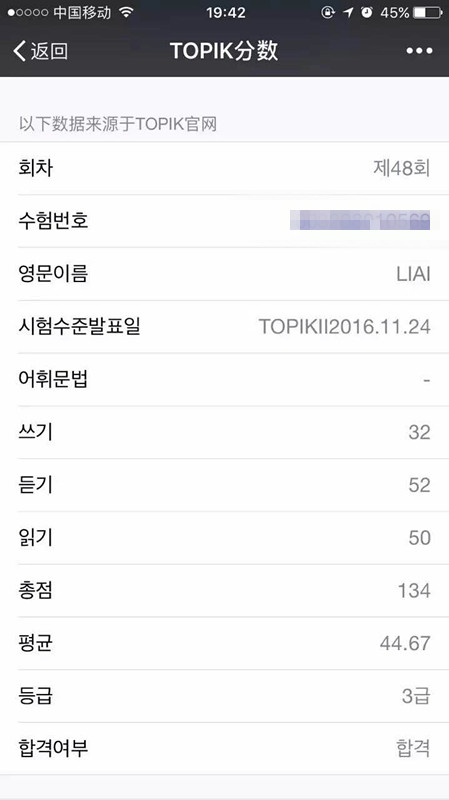 考試類型:TOPIKⅡ所報課程:中級