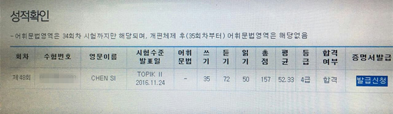 韓國學員成績