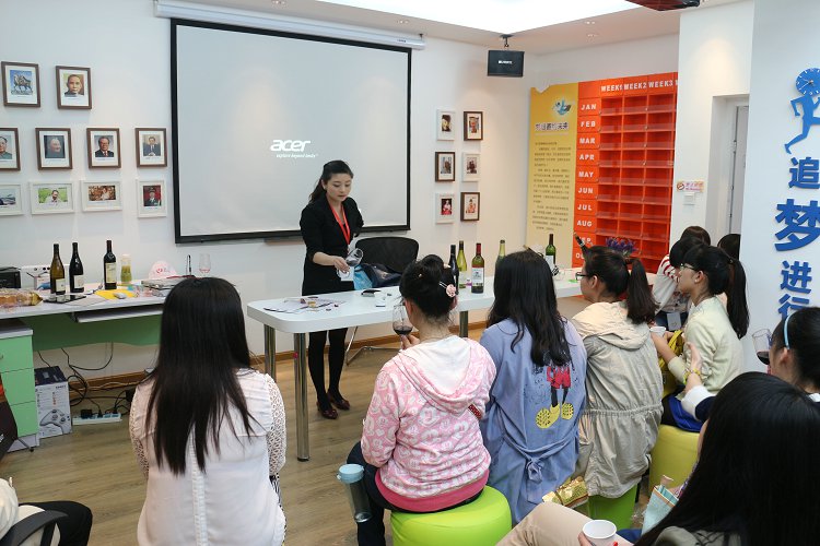 何柳娜老師在給同學(xué)們?cè)敿?xì)的講解紅酒相關(guān)知識(shí)